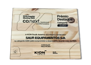 Na oportunidade, recebemos o Prêmio Fornecedor Ouro no Fornecimento de Peças OEM, uma conquista significativa em nossa trajetória junto à Kion.