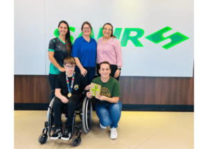 Com muita alegria, a SAUR recebeu hoje o aluno e atleta Bernardo Dupont Daronco, que esteve acompanhado de sua mãe Fabiane Dupont Daronco e da professora e treinadora Verlisiani Dias dos Passos.