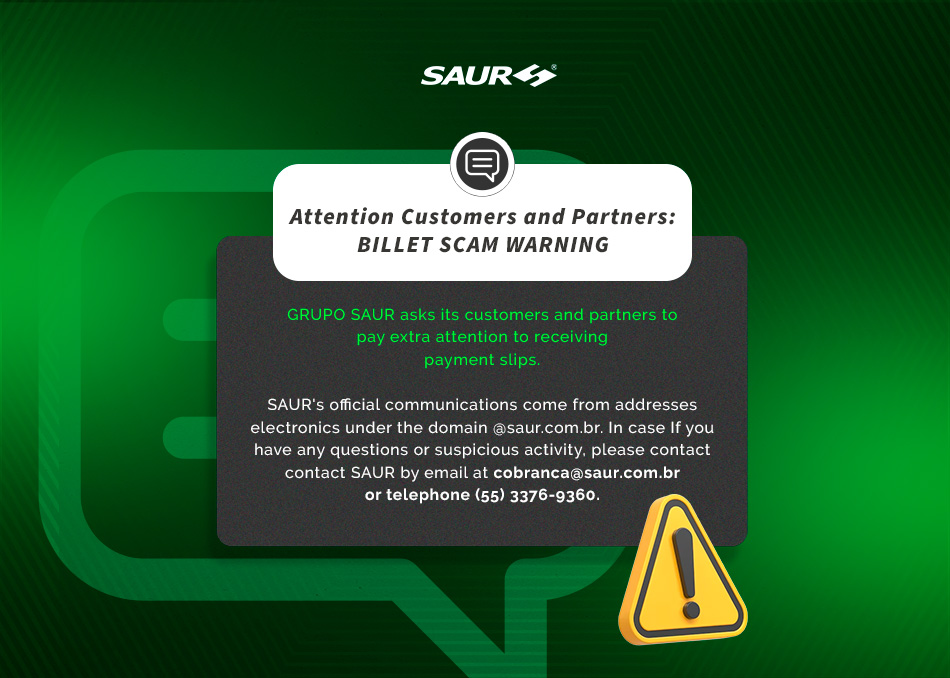 It is worth remembering that all official communications from SAUR come from electronic addresses under the domain @saur.com.br.