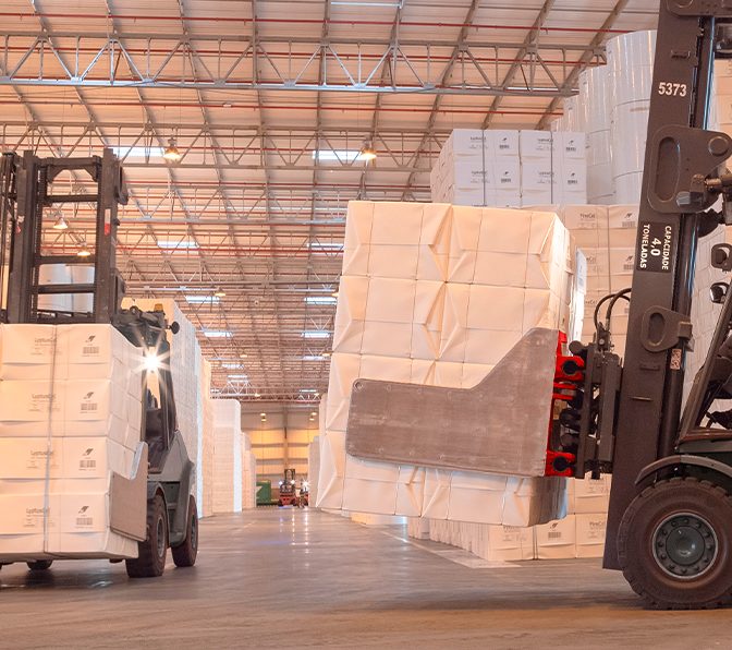 Soluções robustas e versáteis para o manuseio eficiente de fardos de celulose.