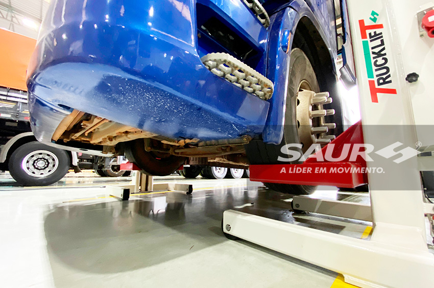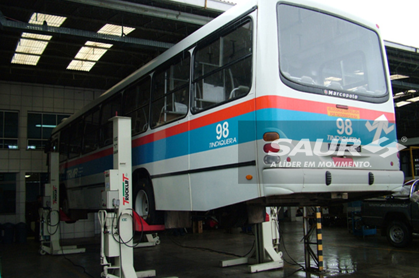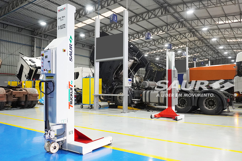 Um conjunto de quatro colunas, que podem ser acionadas em conjunto ou individualmente através de seu painel de operação, forma o Trucklift Vertical SAUR, equipamento destinado a inspeção e manutenção de veículos de passageiros e cargas. Com este conceito moderno, o processo de revisão dos veículos torna-se muito mais ágil, reduzindo o "transit time" da oficina. Para garantir a segurança, um sistema de travamento mecânico é acionado automaticamente sempre que o equipamento estiver estático. Um dispositivo eletrônico microprocessado controla o nivelamento das colunas, acionando um travamento de emergência se o desnível atingir 50 mm.