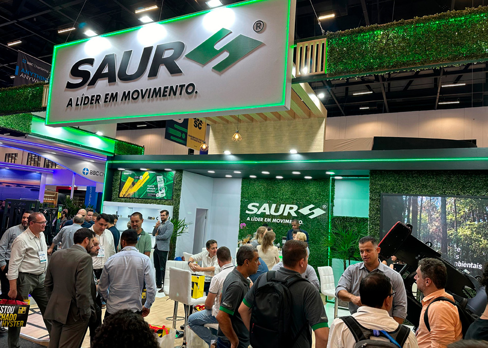 Dentre os equipamentos SAUR divulgados na feira estão Basculador de Container Tipo Pórtico Autoportante, Plataformas de Descarga para Granéis, Coletores de Amostras de Cereais, Spreader Clamp para Celulose e Spreader Suspenso, além de outros produtos que otimizam o manuseio de diferentes tipos de cargas no setor.