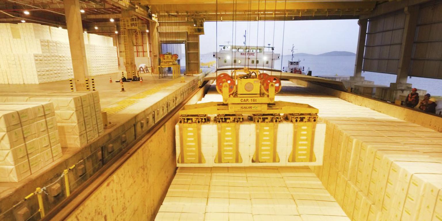 Para movimentar celulose de uma maneira eficiente e segura, recomenda-se o uso do Spreader Clamp para Celulose SAUR. Além da sua alta produtividade, sua operação é facilitada com o uso de controle remoto. Este equipamento é altamente recomendado para o uso em portos ou locais onde haja baldeio/transbordo de carga reduzindo, ou até mesmo, eliminando o trânsito de empilhadeiras pelo pátio.