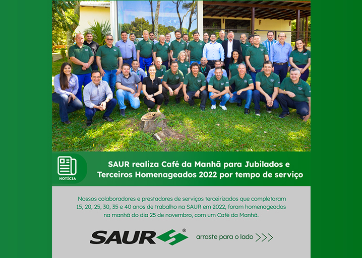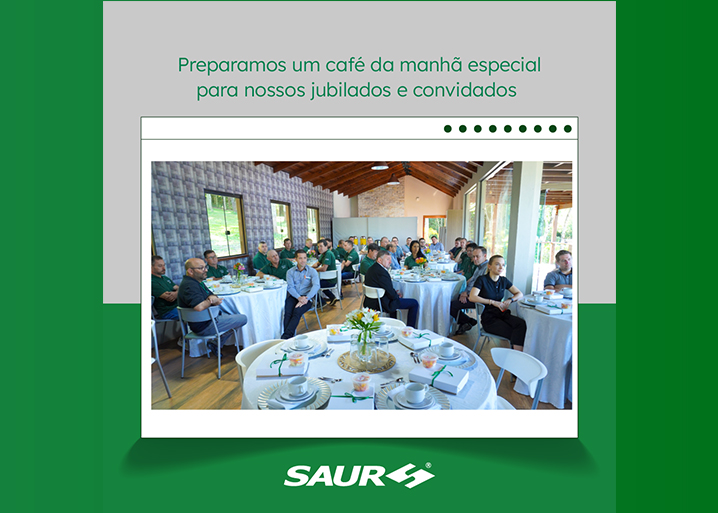 Jubilados SAUR, colaboradores e prestador de serviços terceirizado, foram homenageados com uma mensagem especial, uma apresentação musical e, também, receberam um presente em reconhecimento aos anos de dedicação à nossa empresa, durante um Café da Manhã realizado nesta sexta-feira.
