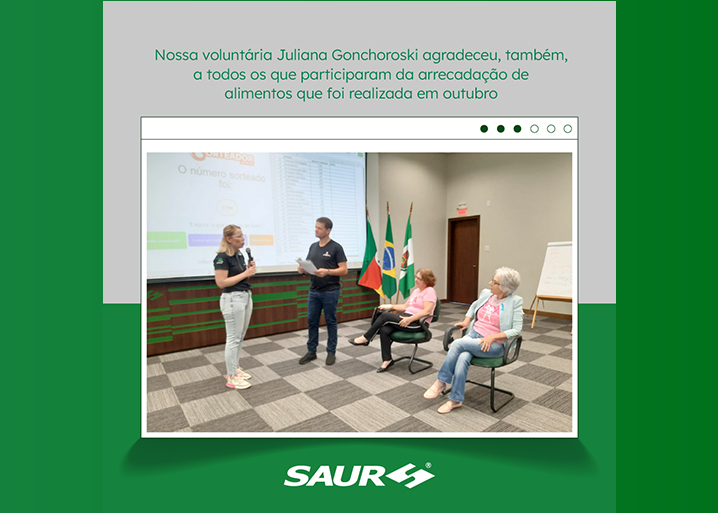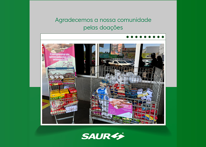 A SAUR agradece às pessoas que doaram os alimentos, à Cotripal por ter oportunizado a coleta nos dois estabelecimentos e às suas voluntárias pela iniciativa e dedicação.