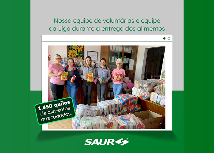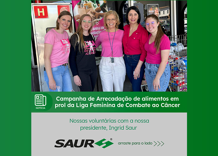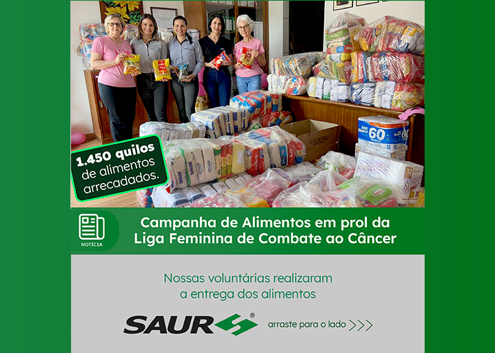 No dia 8 de outubro o grupo de voluntárias da SAUR promoverá um dia de arrecadação de alimentos nos supermercados da Cotripal Centro e Arco-Íris, em prol das famílias cadastradas na Liga Feminina de Combate ao Câncer de Panambi.