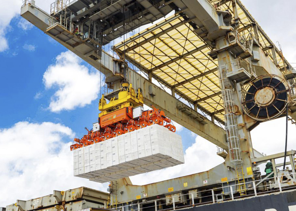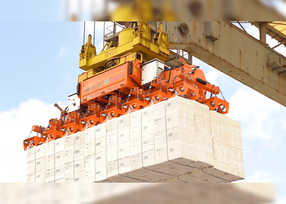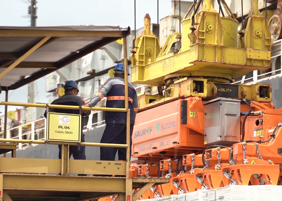 O Spreader possui capacidade para manusear até 32 toneladas de produto, o que vai tornar mais eficiente a logística de movimentação de celulose no Porto de Itaqui.