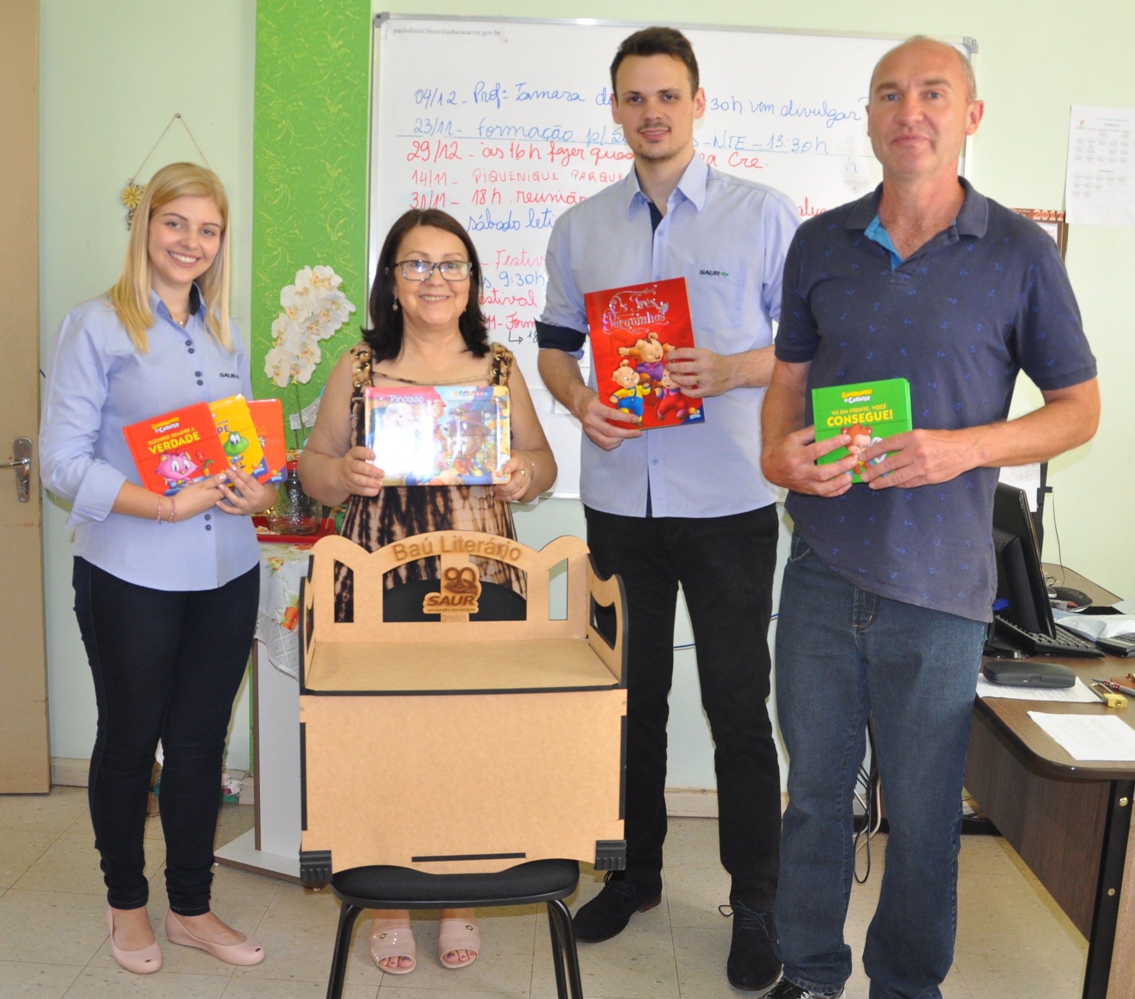 A doação de 30 Baús Literários contendo 48 exemplares de livros de literatura infantil para as escolas municipais, estaduais e particulares de Panambi e para a Biblioteca Municipal encerraram as ações na comunidade, alusivas ao aniversário de 90 anos da SAUR.
