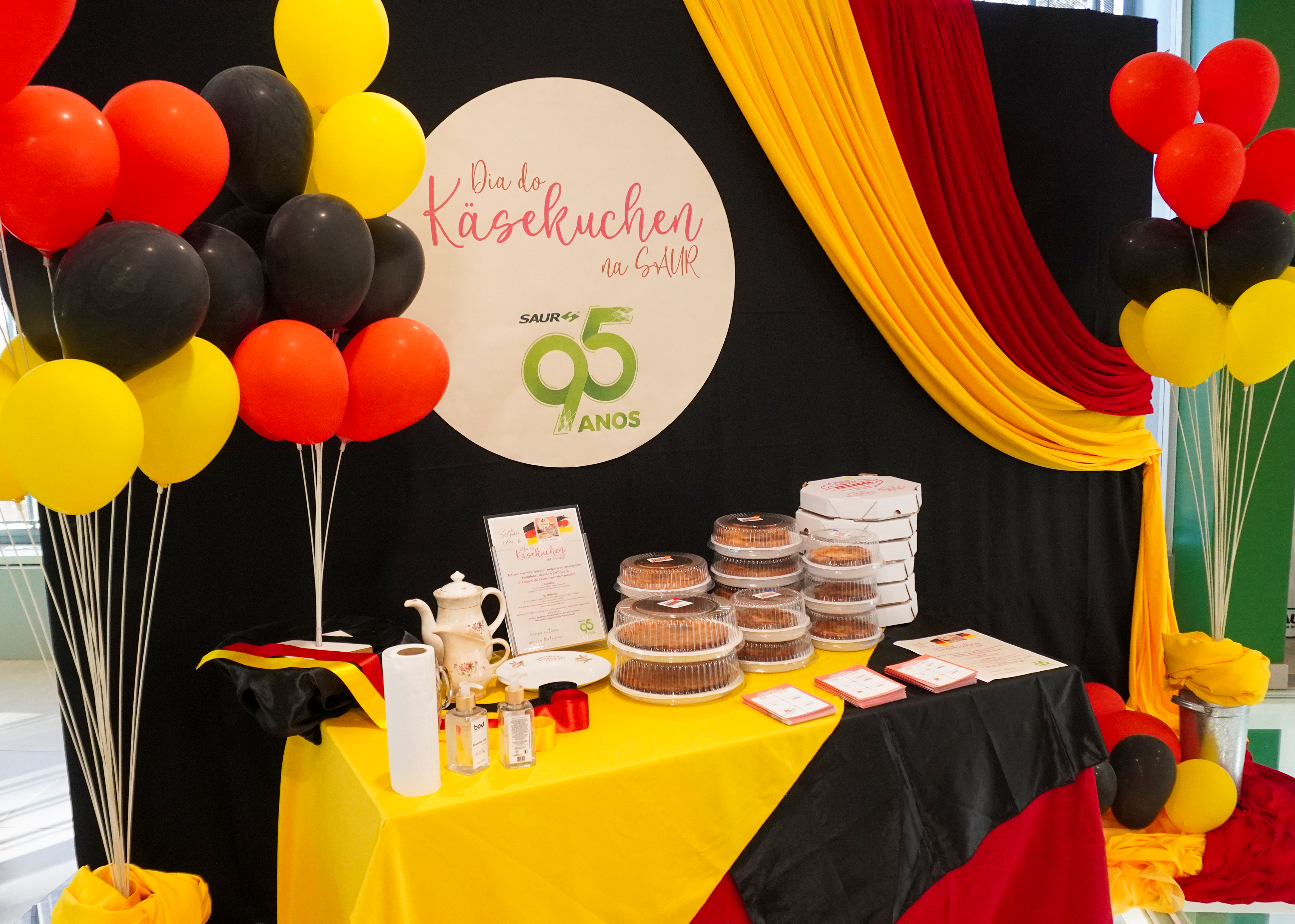 Para valorizar o evento, cultivar essa tradição e, também, comemorar o dia 25 de julho, Dia do Imigrante, Colono e Motorista, foi realizado na empresa o Dia do Käsekuchen na SAUR, que contou com decoração especial, música da cultura alemã e entrega de mini “quesco” a todos os colaboradores. Também, foi realizado um sorteio de bolos pequenos e médios de Käsekuchen, de todos os estabelecimentos participantes.